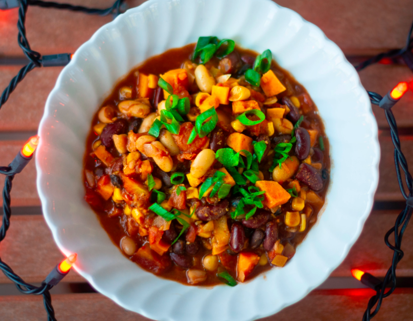 Chili is a fantastic way to get in lots of protein, fiber, vitamins, and minerals. This particular recipe will provide ~10 grams of both protein and fiber per serving! The daily recommended fiber intake for adults is 38 grams for men and 25 for women. Did you know fiber has many benefits such as helping you stay full longer, promoting digestive health, lowering cholesterol, and controlling blood sugar levels.