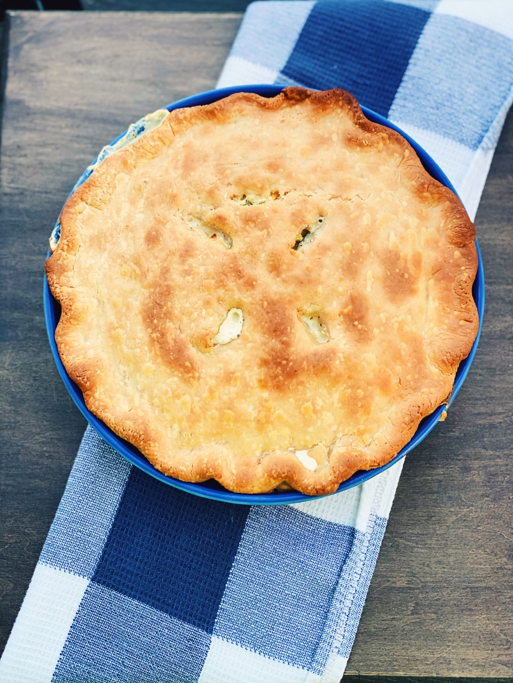 - Bake ~30 minutes, until pie crust is golden brown
